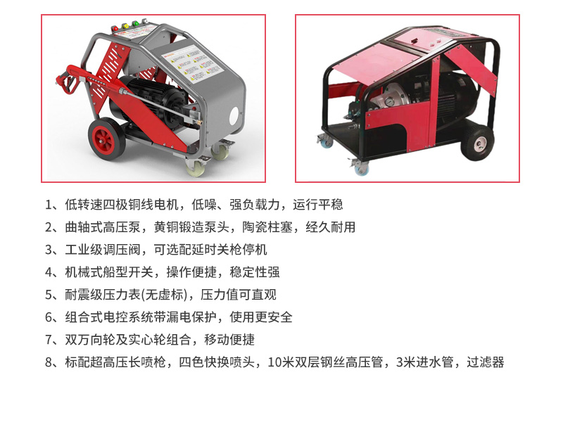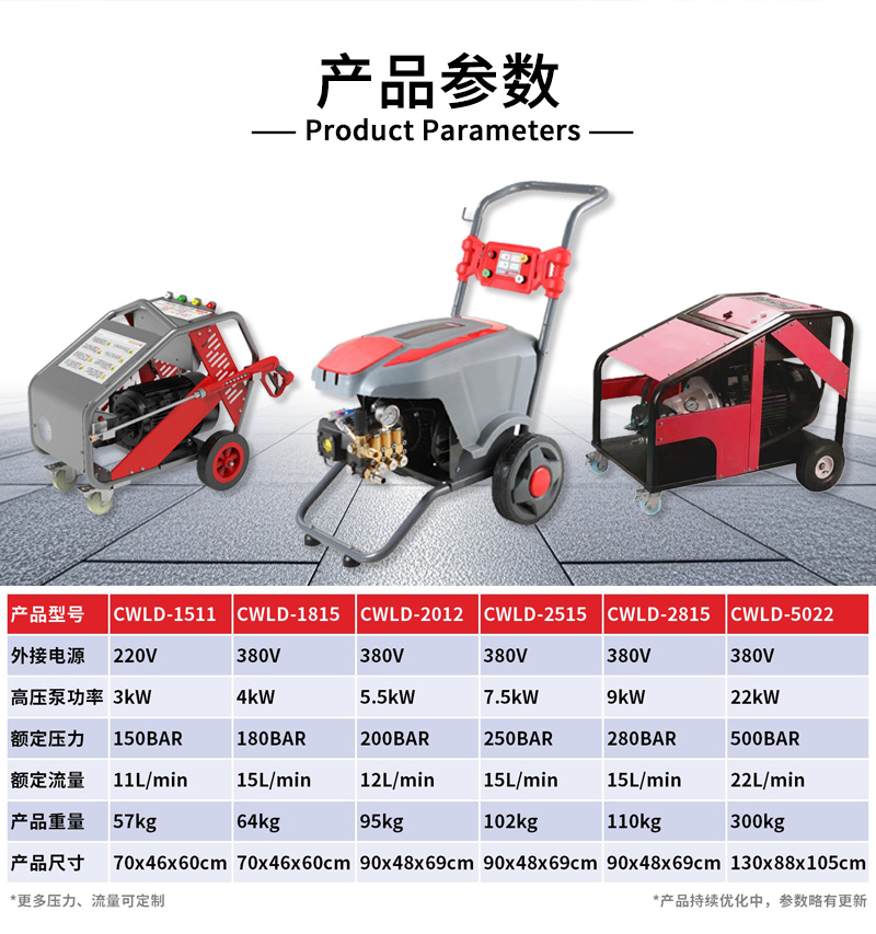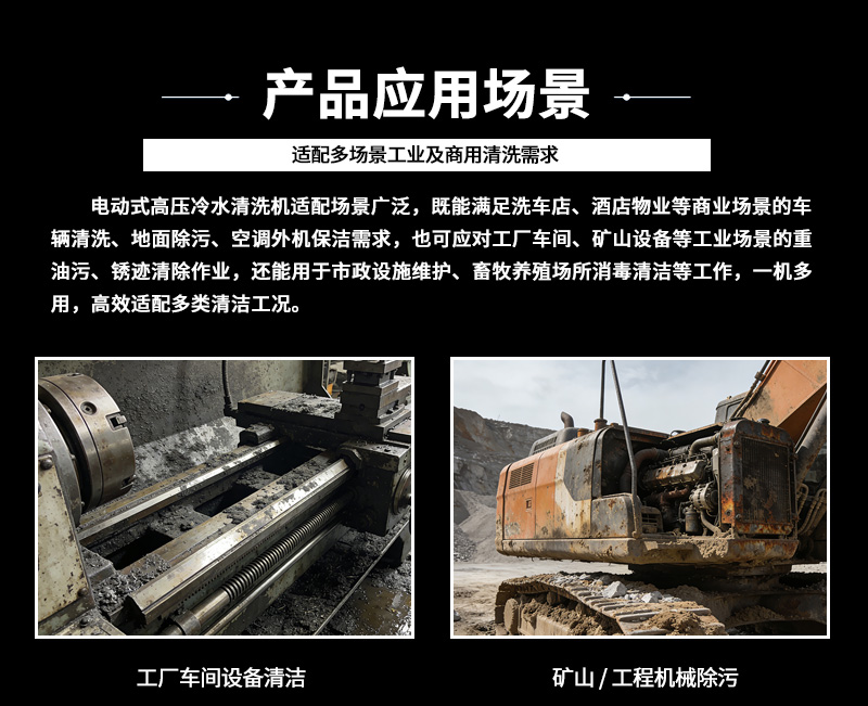 CWLD全电高压冷水机采用全电驱动设计,动力平稳、节能省耗,高压冷水冲刷力充足,可有效去除灰尘、泥沙、水垢、杂物等各类顽固污渍。设备结构扎实、操作便捷、移动灵活,适配工厂车间、机械设备、管道、养殖场、汽修厂、工程车辆等工业及商用清洁场景,可满足长时间连续作业需求,是一款稳定可靠的高压冷水清洗设备。
