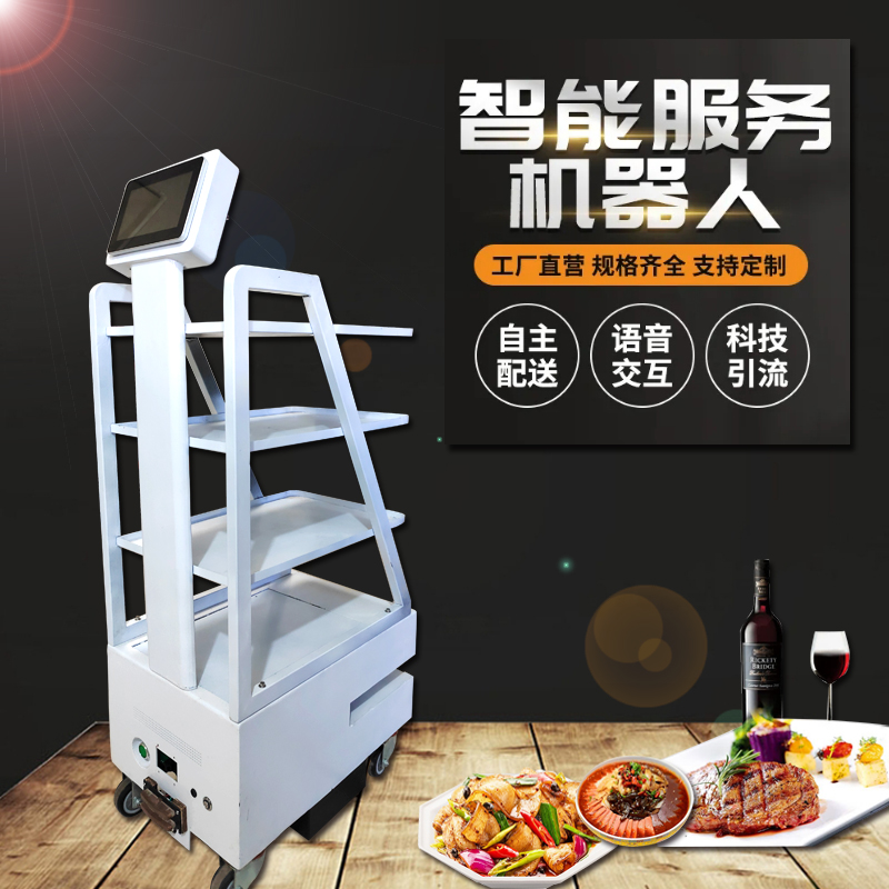 看看我们这款送餐机器人,可以联系工作超过十二小时,相当于一点五到两个服务员的工作量,不需要支付工资,也不需要休假,长期来,可以为企业节约大量的人力成本,也可以提升顾客的用餐体验,它在送餐过程中,可以播放餐厅宣传广告,给餐厅带来免费的宣传效果,也可以播放音乐,到达餐桌时进行语音提醒,给顾客带来全新的体